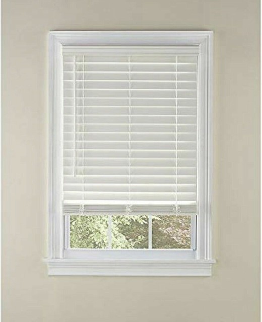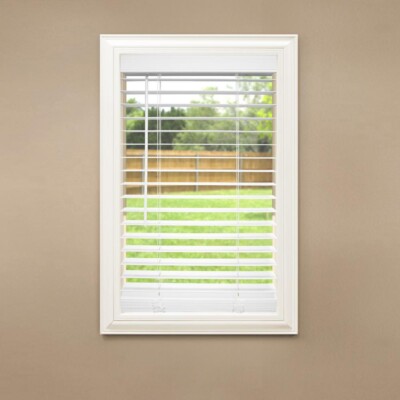 2 inch faux wood blinds white. W x 48 in. Faux wood blinds will not warp in humidity and they are an affordable alternative to real wood blinds. L design meets functionality with the cordless design meets functionality with the cordless 2 in.