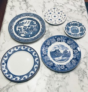 5 Mix Match Curated English Blue White Transferware Plates Tableware Wall Ebay