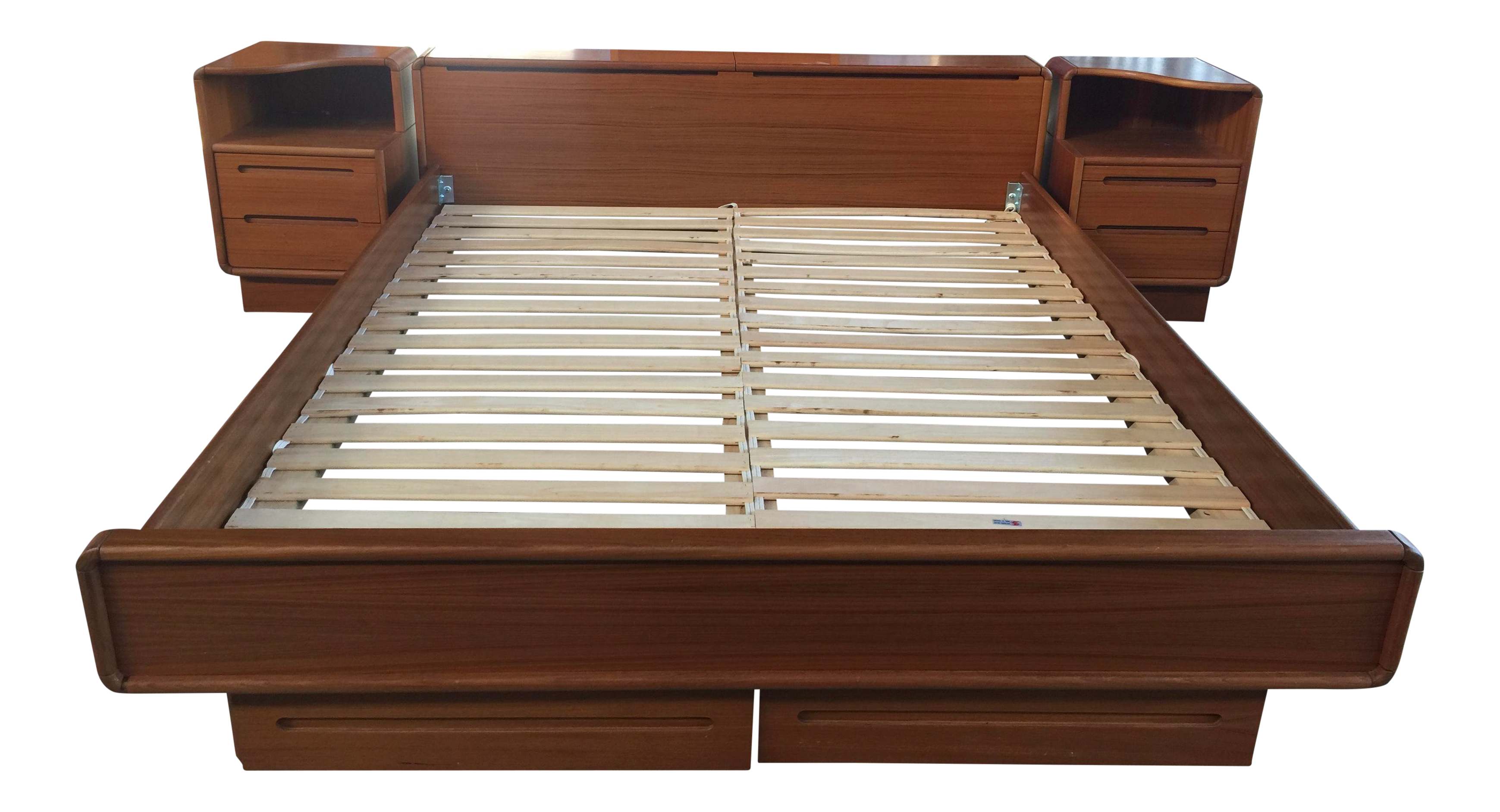Mid Century Danish Modern Headboard Bed Frame California King Rosewood Floating Nightstands Denmark Mid Century Sacramento