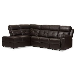 Roland Modern And Contemporary Faux Leather 2 Piece Sectional With Recliner And Storage Chaise Dark Brown Baxton Studio Target